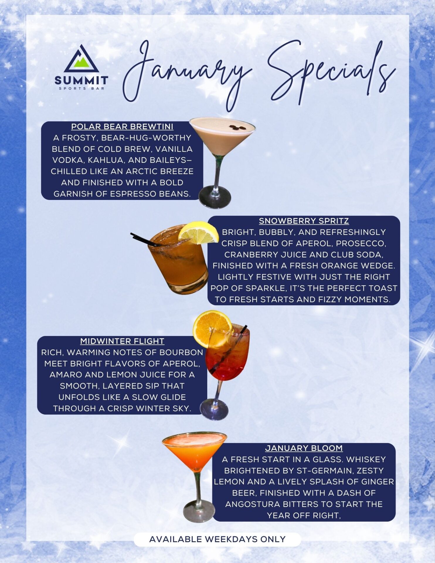 There’s always something new pouring at our bar. Every month, we shake things up with fresh drink specials featuring everything from seasonal cocktails and featured drafts to rotating liquor spotlights, wine specials, and limited-time creations. Whether it’s a highlighted spirit, a curated wine pour, or a game-day favorite with a twist, there’s always a new reason to raise a glass. Check back often to see what’s being featured this month—you never know what your new go-to drink might be.